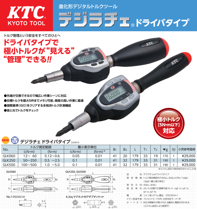 ● 極小トルクに対応した進化形デジタルトルクツール「デジラチェ」のドライバタイプです。