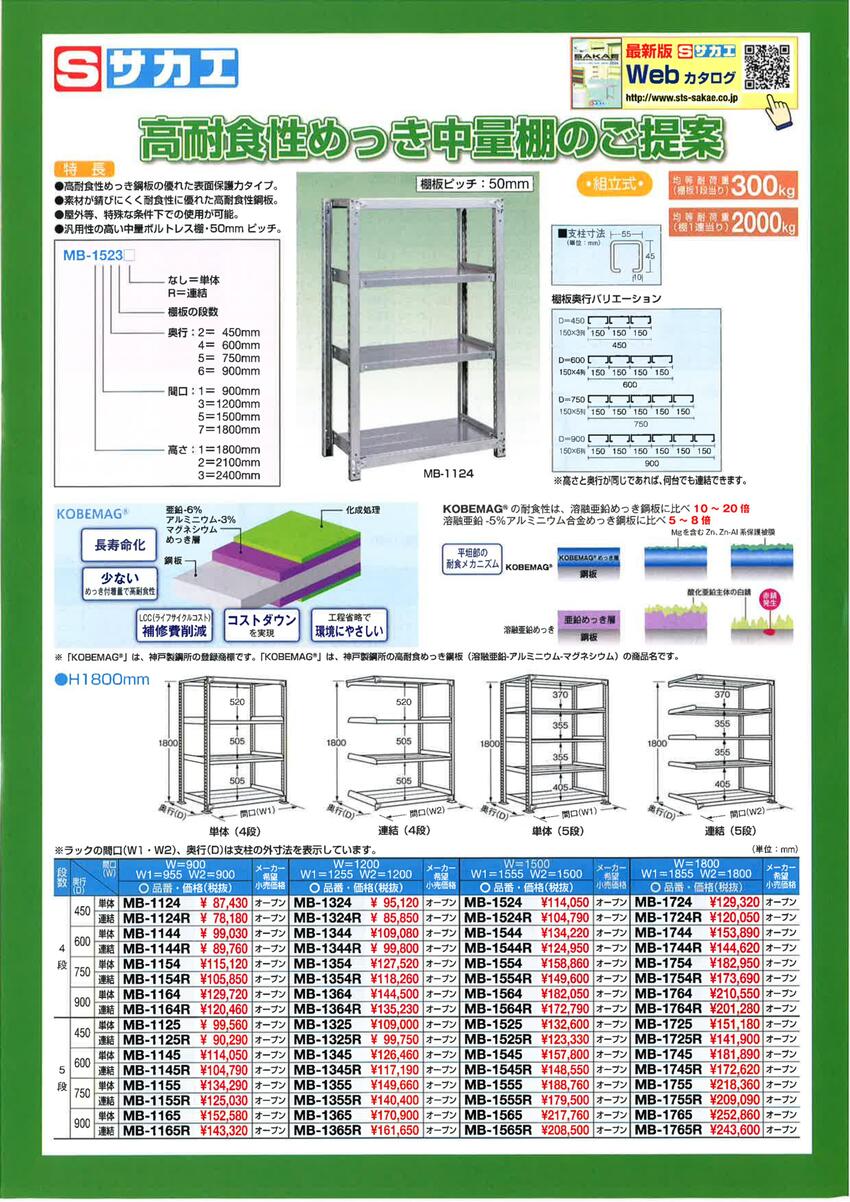 サカエ 高耐食性めっき中量棚