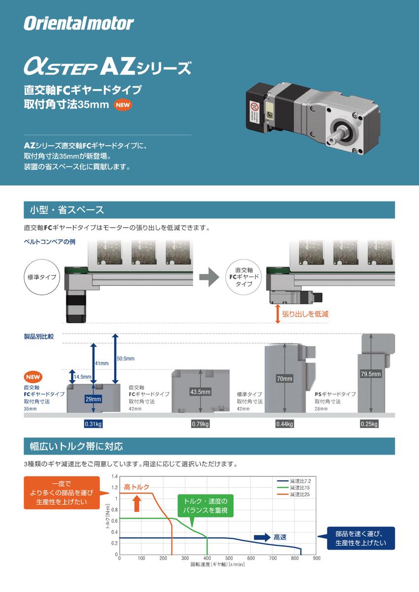 ◇ 直交FCギアードタイプに取り付け角35mmが登場。装置の省スペース化に貢献します。
