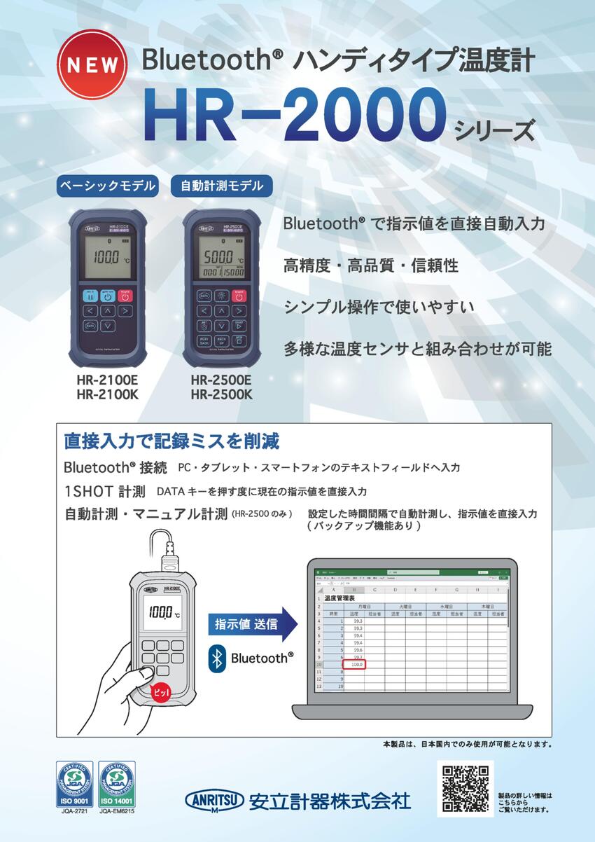 安立計器 ハンディタイプ温度計HR-2000シリーズ 新発売