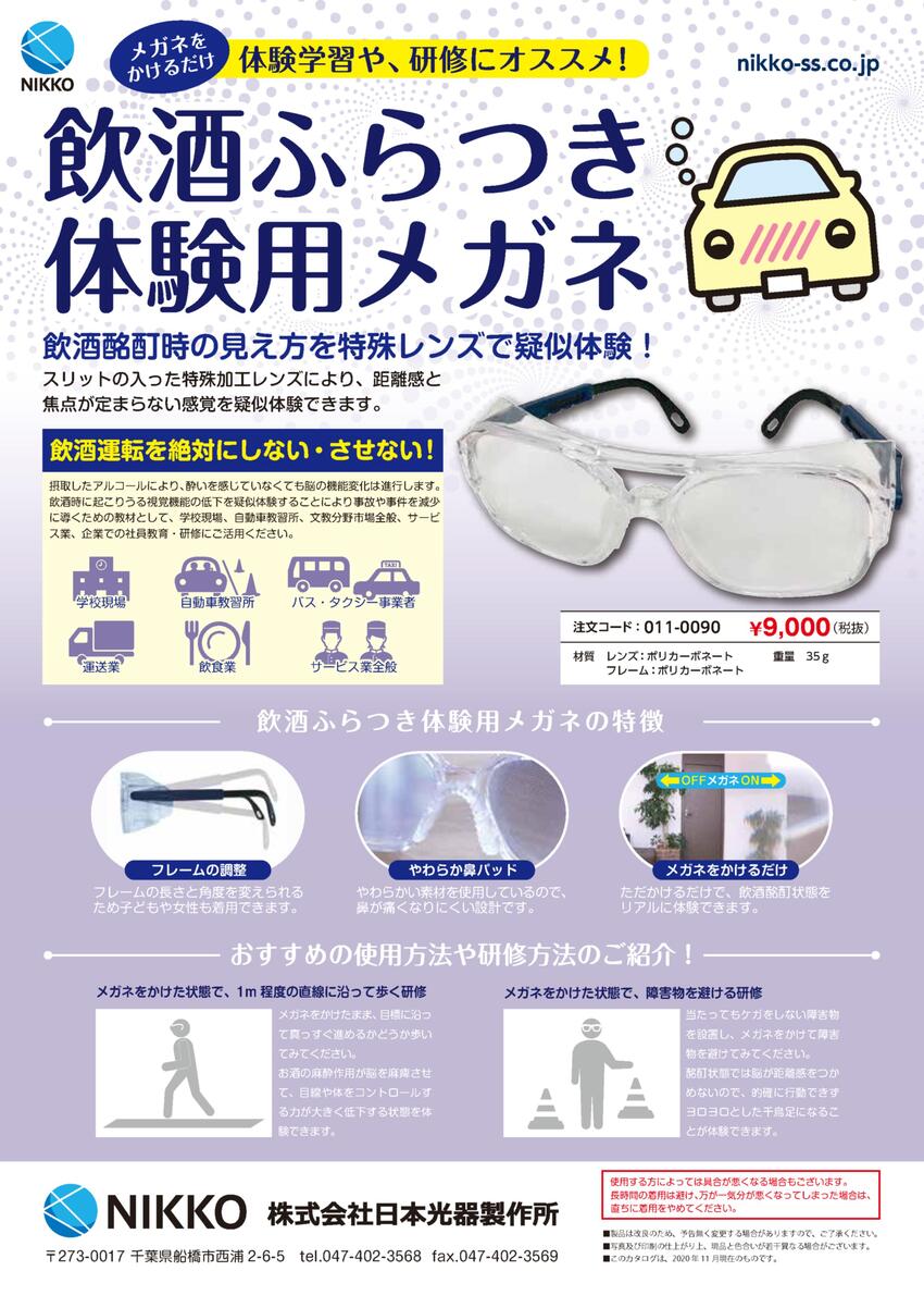 ◇ スリットの入った特殊加工レンズにより、距離感と焦点が定まらない感覚を疑似体験できます。 飲酒運転を絶対にしない・させない! 体験学習や、研修にオススメです。