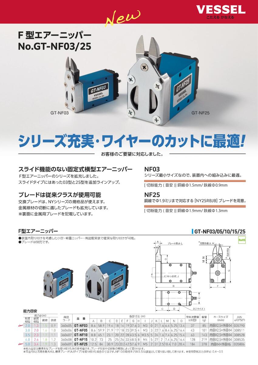 ◇ スライド機能のない固定式横型エアニッパーにスライドタイプにはあった03型と25型を追加ラインアップ。ワイヤーカットに最適です。