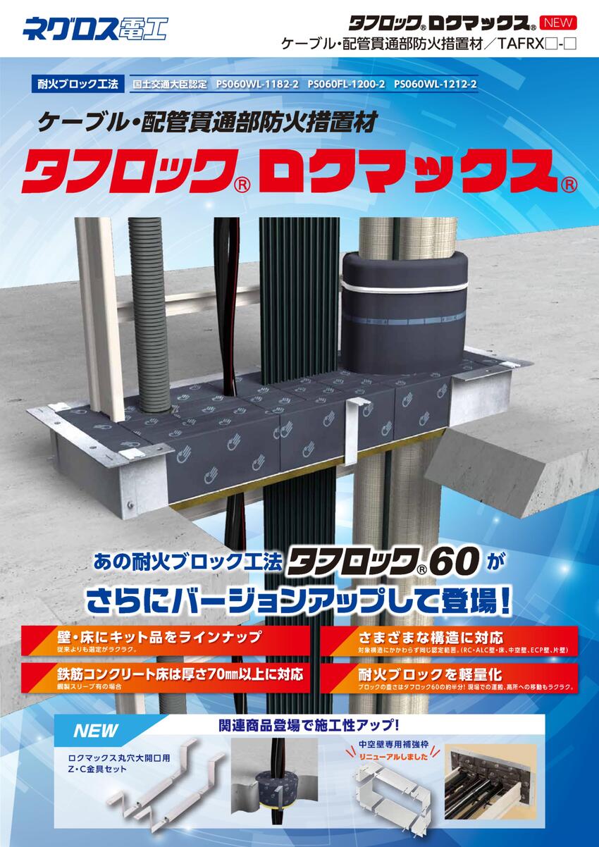◇ケーブル・配管貫通部防火措置材の耐火ブロック工法タフロック60がバージョンアップして新登場。