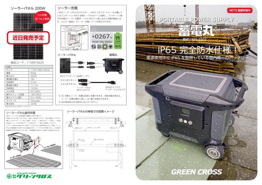 ◇ 防塵・防水性能IP65を備えた設計で、雨天や砂塵の多い環境下でも問題なく使用可能。非常時の電力供給に最適な信頼性を提供します。
