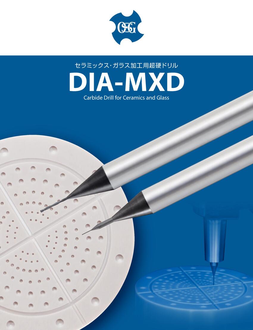 ◇ 半導体製造装置・光学部品・電子部品などに使用されるセラミック加工では、工具の急激な摩耗進行がトラブルが主な原因となります。DIA-MXDは、安定した高い耐久性により、セラミック加工における課題を解決する超硬ドリルです。