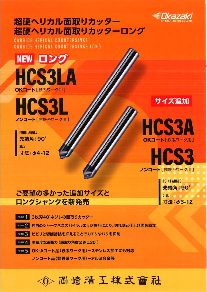 岡崎精工 超硬ヘリカル面取りカッター HCS3/ HCS3A