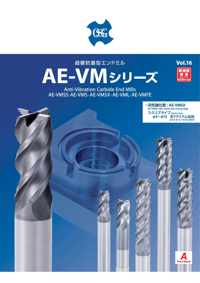 ◇ 炭素鋼・合金鋼・ステンレス鋼からチタン合金・Ni基合金まで幅広い被削材に対応可能な超硬防振型エンドミルAE-VMシリーズ。ショート形AE-VMSは、工具剛性と切りくず排出性を両立した溝フォームにより安定加工を実現し、部品加工で嫌がられるバリを抑制します。