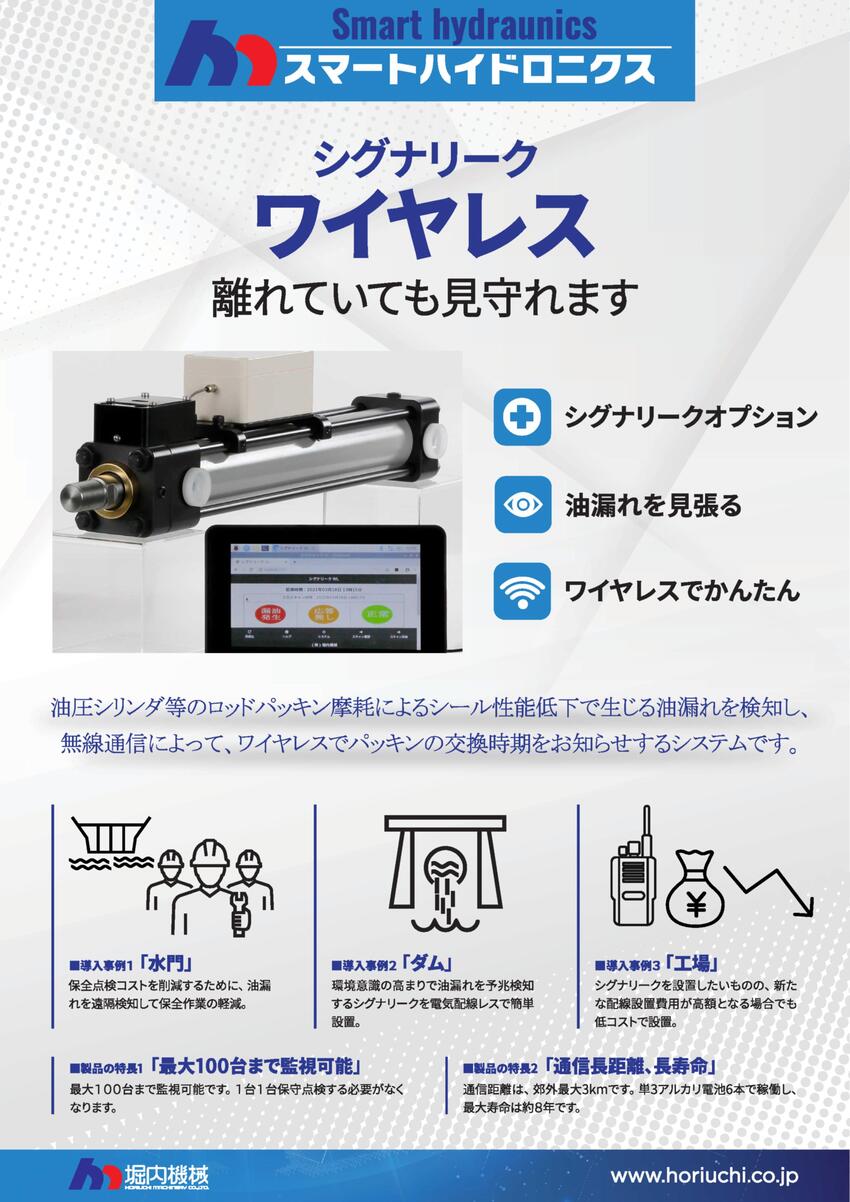 ◇ 油圧シリンダ等のロッドパッキン摩耗によるシール性能低下で生じる油漏れを検知し、無線通信によって、ワイヤレスでパッキンの交換時期をお知らせするシステムです。